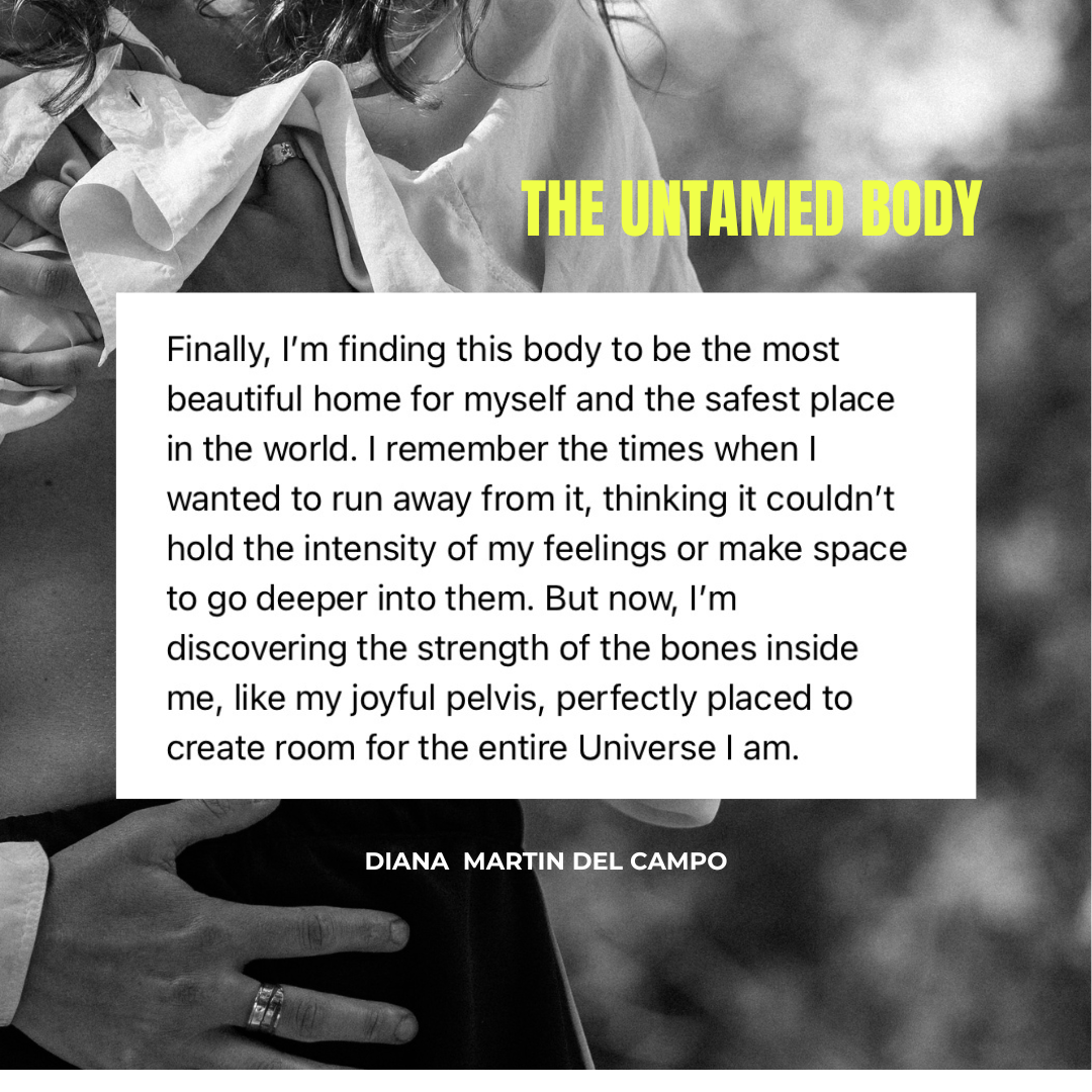 The untamed body can not be anticipated, curated or pushed into becoming - it can only be called forth into the embrace of authenticity, the courage to defy what restricts us from feeling, the honour to unburden ourselves and each other from all the roles we play, conditioned into holding back that we do feel lonely, turned on, enraged, afraid, proud - and be known, loved in all of our human landscapes, right here.